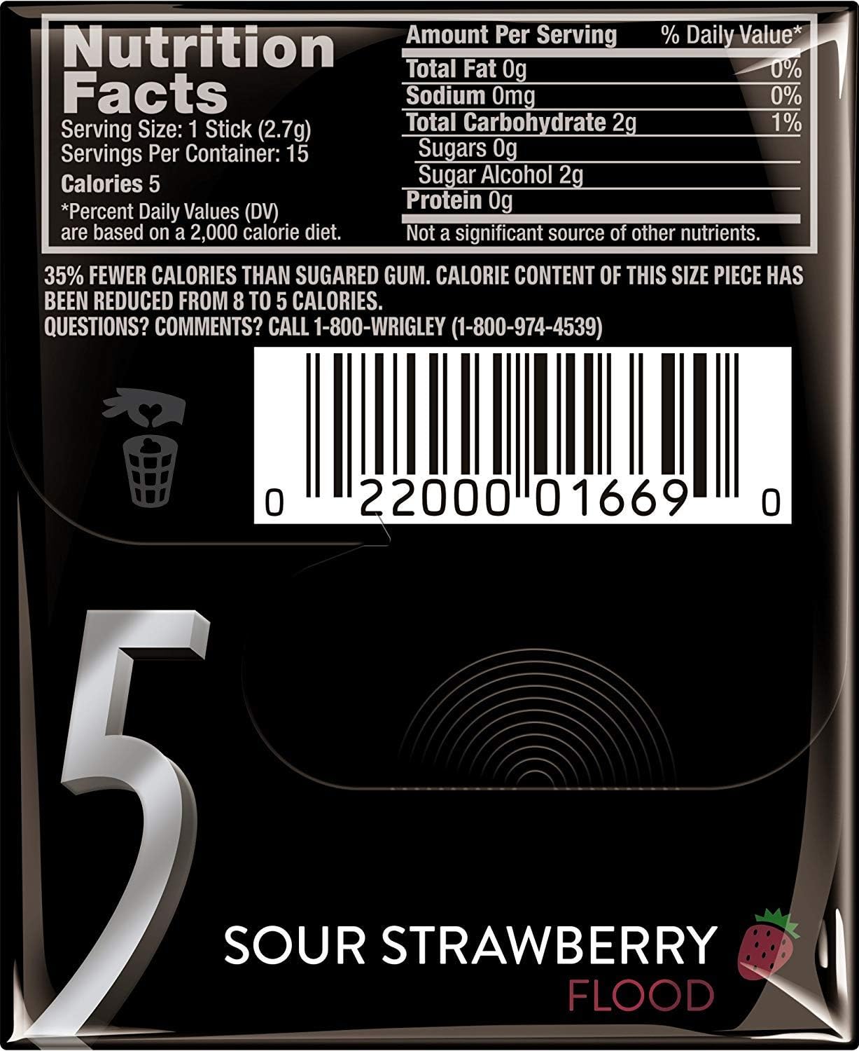Five 5 Gum Strawberry Flood Sugarfree Gum Single Pack 15 Ct